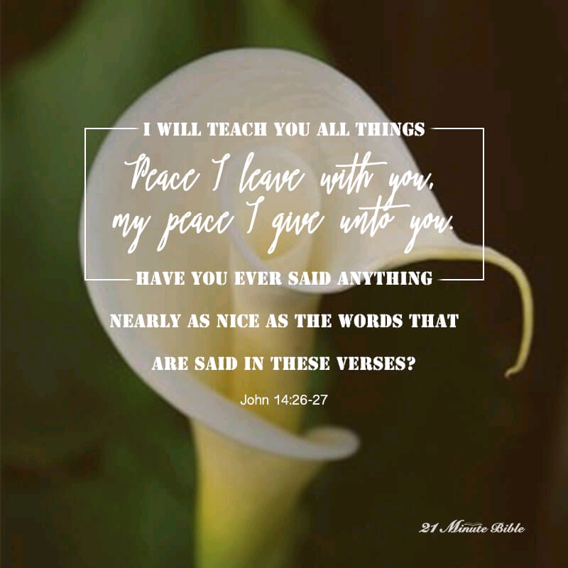 Jesus wants to teach his apostles everything that he knows, leaving them peace and to comfort them after his death. His message to them was perfect, leaving them the Holy Spirit to guide them. He emphasizes that the world does not provide the same to them.