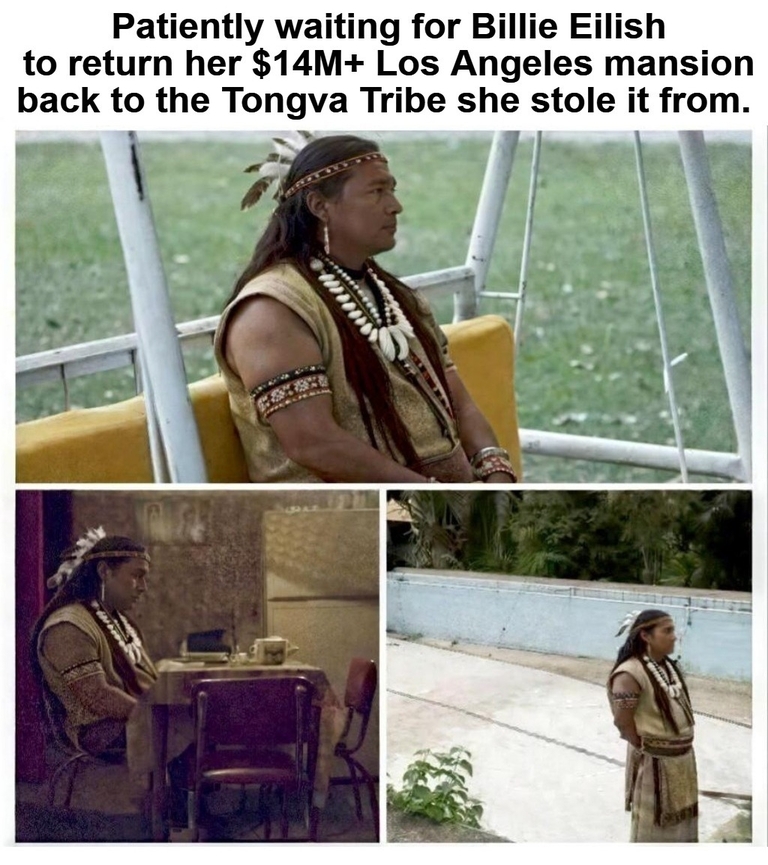 Patiently waiting for hypocrite Billie Eilish to return the land she stole from the Tongva Tribe.