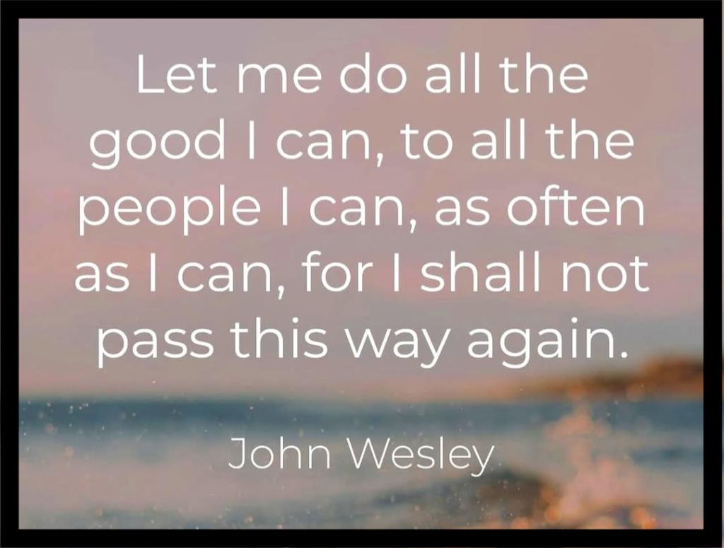 “Let me do all the good I can, to all the people I can, as often as I can, for I shall not pass this way again.” — John Wesley