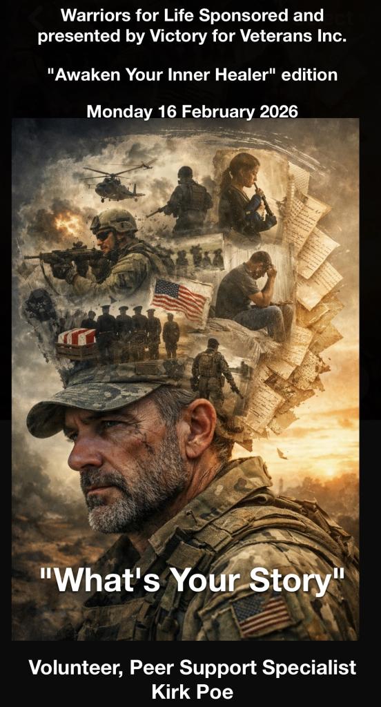 Warriors for Life (WFL) Online "Awaken Your Inner Healer!" edition presented by Victory for Veterans, Inc. (VFV) - Monday (TONIGHT), February 16, 2026 @ 4:30 PM PT, 5:30 PM MT, 6:30 PM CT, & 7:30 PM ET