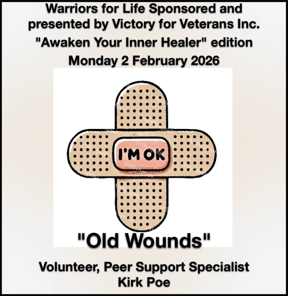 Warriors for Life (WFL) Online "Awaken Your Inner Healer!" edition presented by Victory for Veterans, Inc. (VFV) - Monday (TONIGHT), February 2, 2026 @ 4:30 PM PT, 5:30 PM MT, 6:30 PM CT, & 7:30 PM ET
