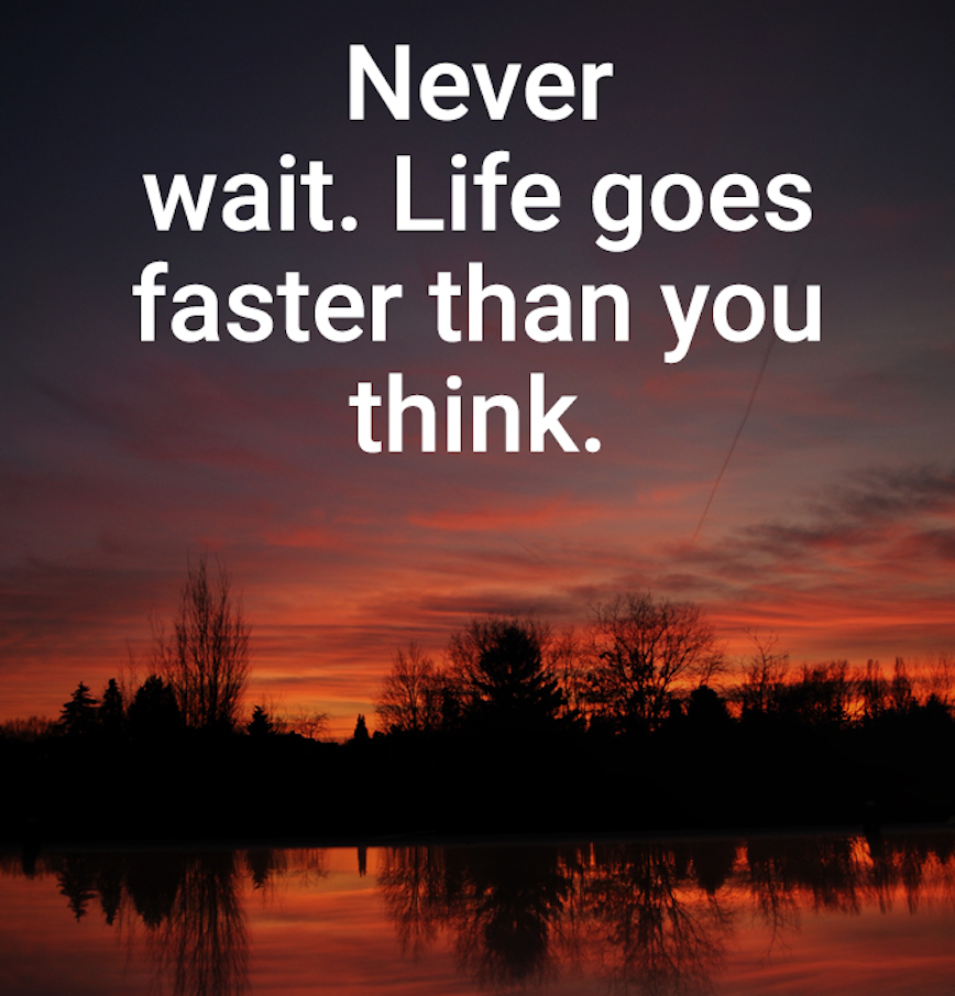 “Never wait. Life goes faster than you think.” — Unknown Author