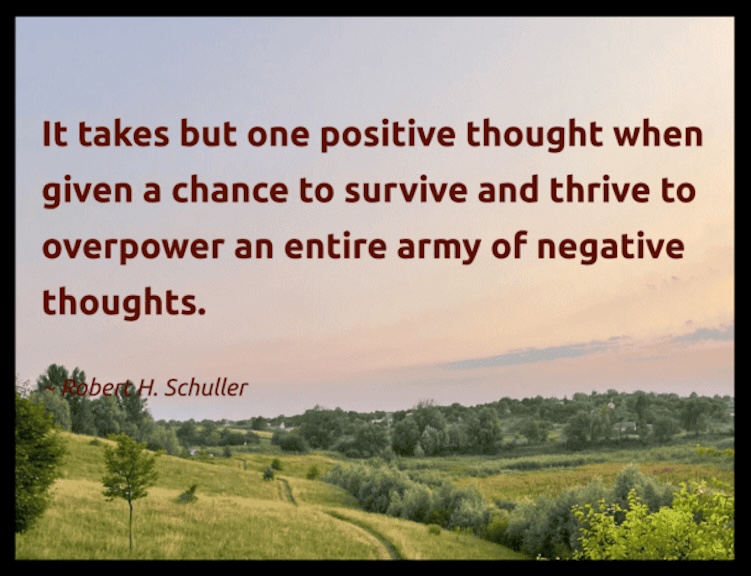 “It takes but one positive thought when given a chance to survive and thrive to overpower an entire army of negative thoughts.” — Robert H. Schuller