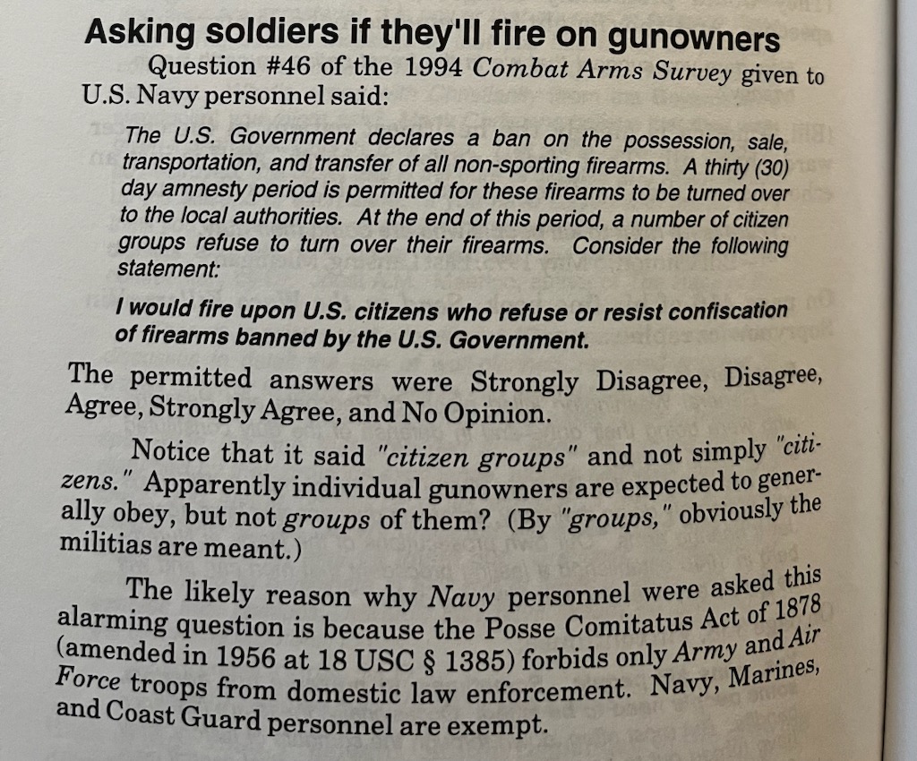 The military was asking potential recruits back in the 90’s a question if they would fire on American citizens. That question is also referenced in Boston’s Gun Bible.