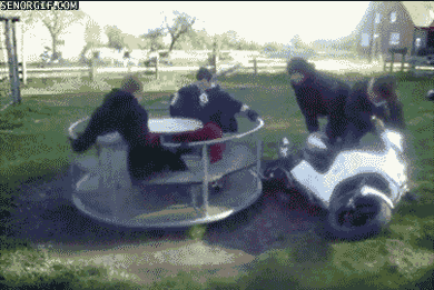 We had these in our playgrounds as kids. As long as older kids dont hit it running ..nobody goes flying. They had bars near the center for kids to grab IF such a situation arose. I also found I could survive the "big boys" by sitting in the middle