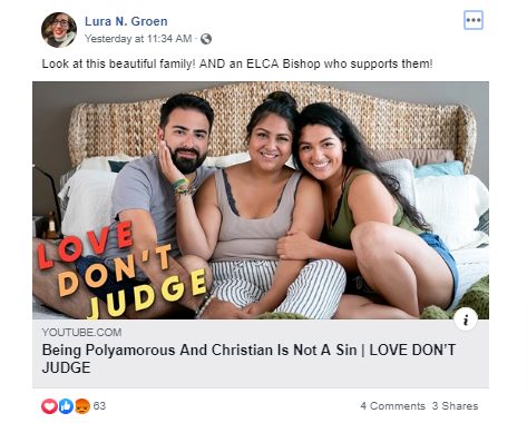 ELCA pastor Lura Groen, who has previously PRAISED polyamory and one night stands, seeks to combat the notion that the bible has a sexual ethic binding for Christians.