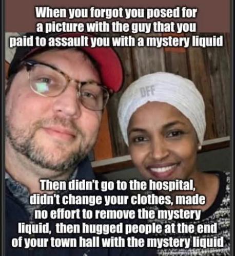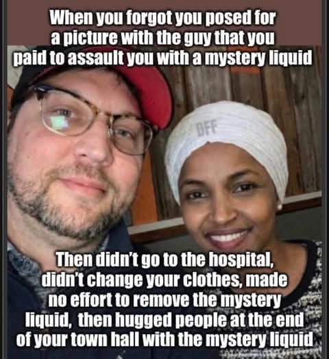#Repost ///@clerpatriot: Ilhan Omar issues a statement on why she decided not to immediately clean herself off after her “attack” and you will never believe what she said!