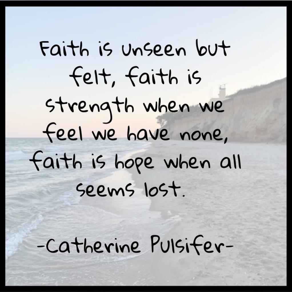 “Faith is unseen but felt, faith is strength when we feel we have none, faith is hope when all seems lost.” — Catherine Pulsifer