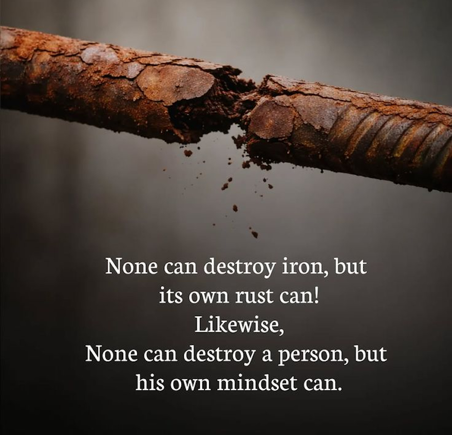 “None can destroy iron, but its own rust can! Likewise, none can destroy a person, but his own mindset can.” — Unknown Author