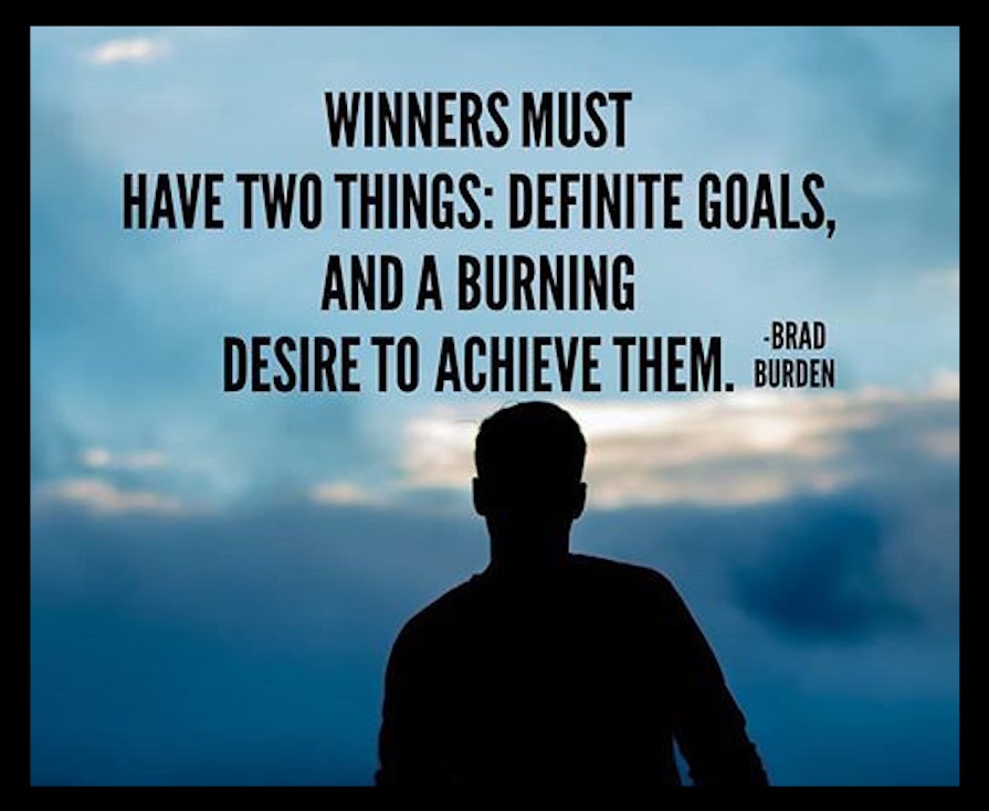 “Winners must have two things: Definite goals, and a burning desire to achieve them.” — Brad Burden
